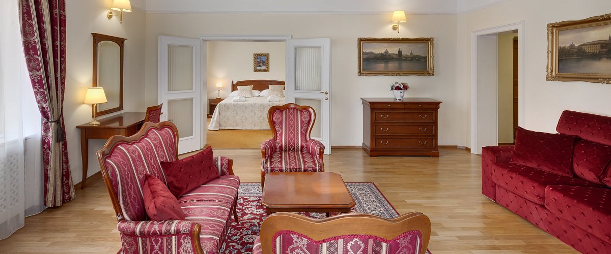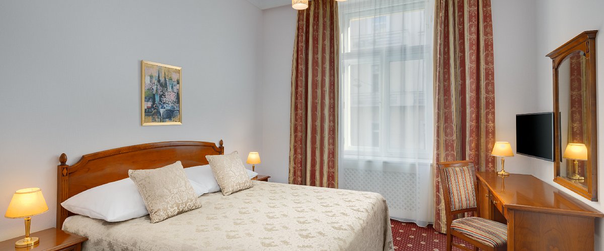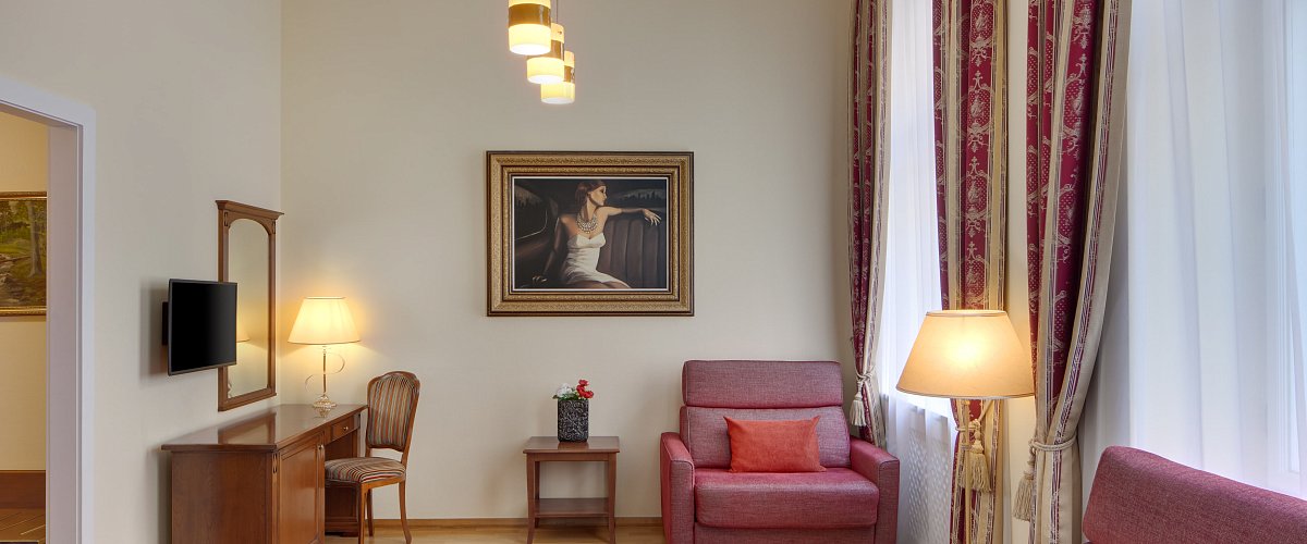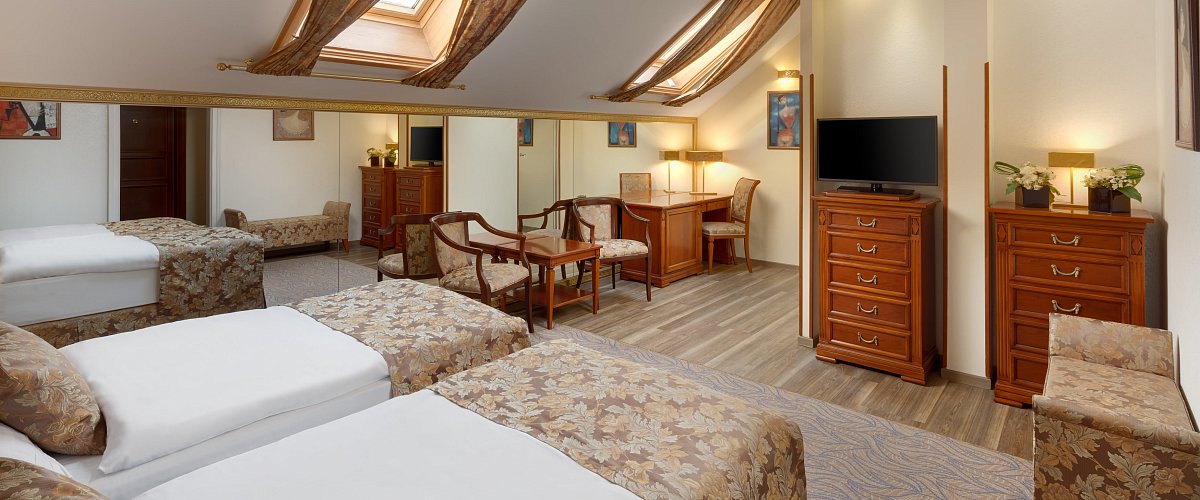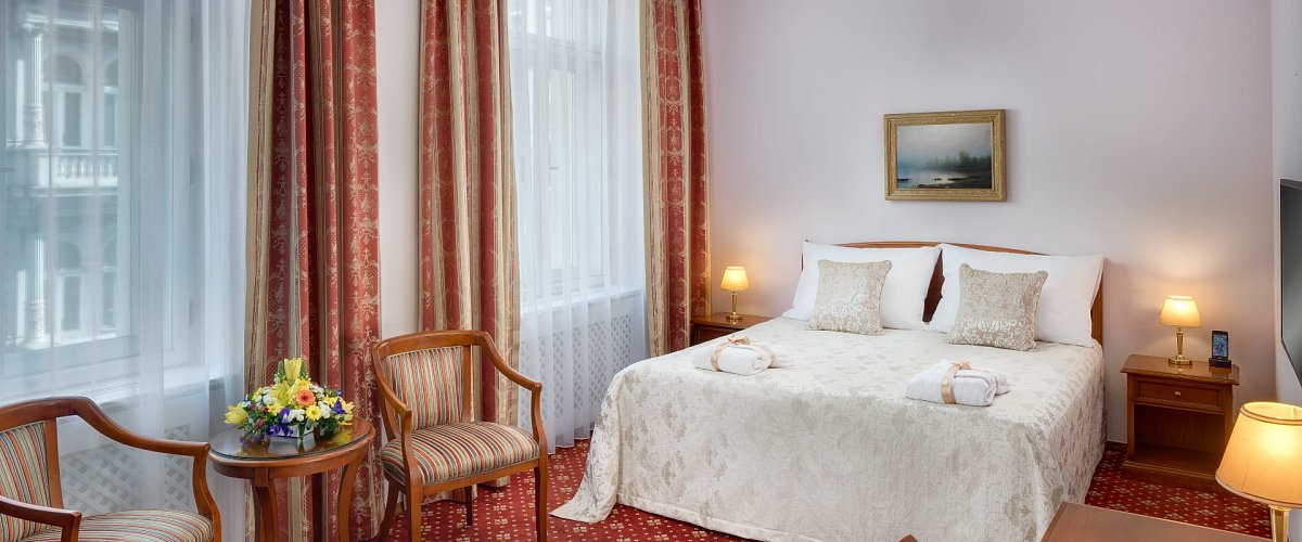 Hay amplias habitaciones para no fumadores para 1-5 personas. El interior está diseñado en armonía con la arquitectura general del hotel (neoclasicismo austrohúngaro del siglo XIX) y en agradables tonos naturales. El lujoso mobiliario clásico al estilo de Villa Borghese invita a relajarse sin ser molestado después de un día ajetreado. Todas las habitaciones están totalmente climatizadas e insonorizadas, lo que garantiza una estancia tranquila. Somos un hotel familiar: un niño menor de 6 años es gratis, también se proporciona una cuna sin cargo a pedido. No se permiten mascotas. Ofrecemos un rico y sabroso desayuno incluido en el precio. En el desayuno, puede esperar un buffet frío y caliente, una selección de pasteles dulces, productos lácteos, jugos y más.